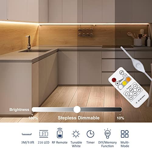 LLTOP Underneath Cupboard Lighting, Tunable White 3 Coloration 6 PCS LED Counter Strip Lights with Distant Management Dimmer and Adapter Dimmable Closet Lights Package for Kitchen, Bed room, Shelf, Showcase, TV Again