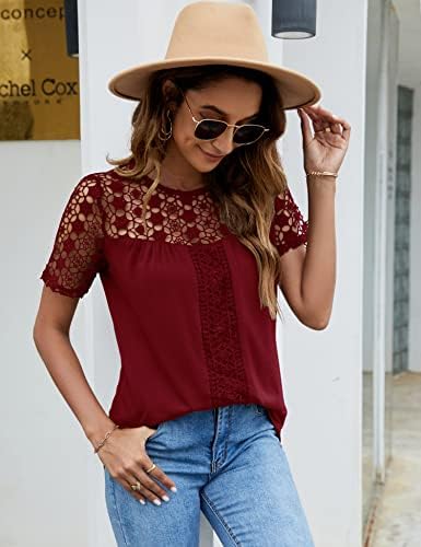 LOMON Womens Tops Summer time Informal Eyelet Cute Shirts Lace Brief Sleeve Shirt Tunic Tops