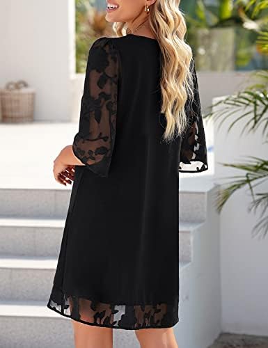 LookbookStore 3/4 Sleeve Gown for Ladies Shift Cute Summer time Tunic Floral Lace Clothes