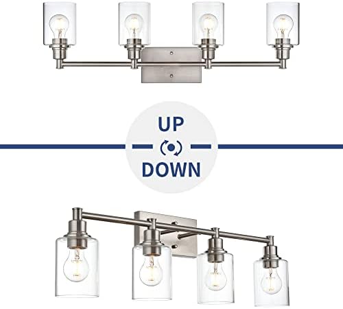 Be the first to review “Lucidce Lavatory Self-importance Lights 4-Mild Wall Lighting Fixtures with Clear Glass Shades Trendy Brushed Nickel Wall Sconces for Hallway Bed room”
