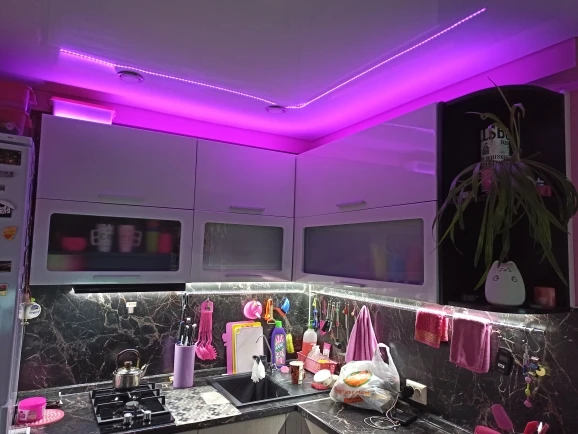 A good tape, made a backlight in the kitchen, the wife is happy. But note that you need a power supply. I took 2 Apers from the old set-top box. Enough. Shining with pleasant light took not bright in selicon. The truth when I opened the bag, almost choked, the stink is terrible. Otherwise satisfied.