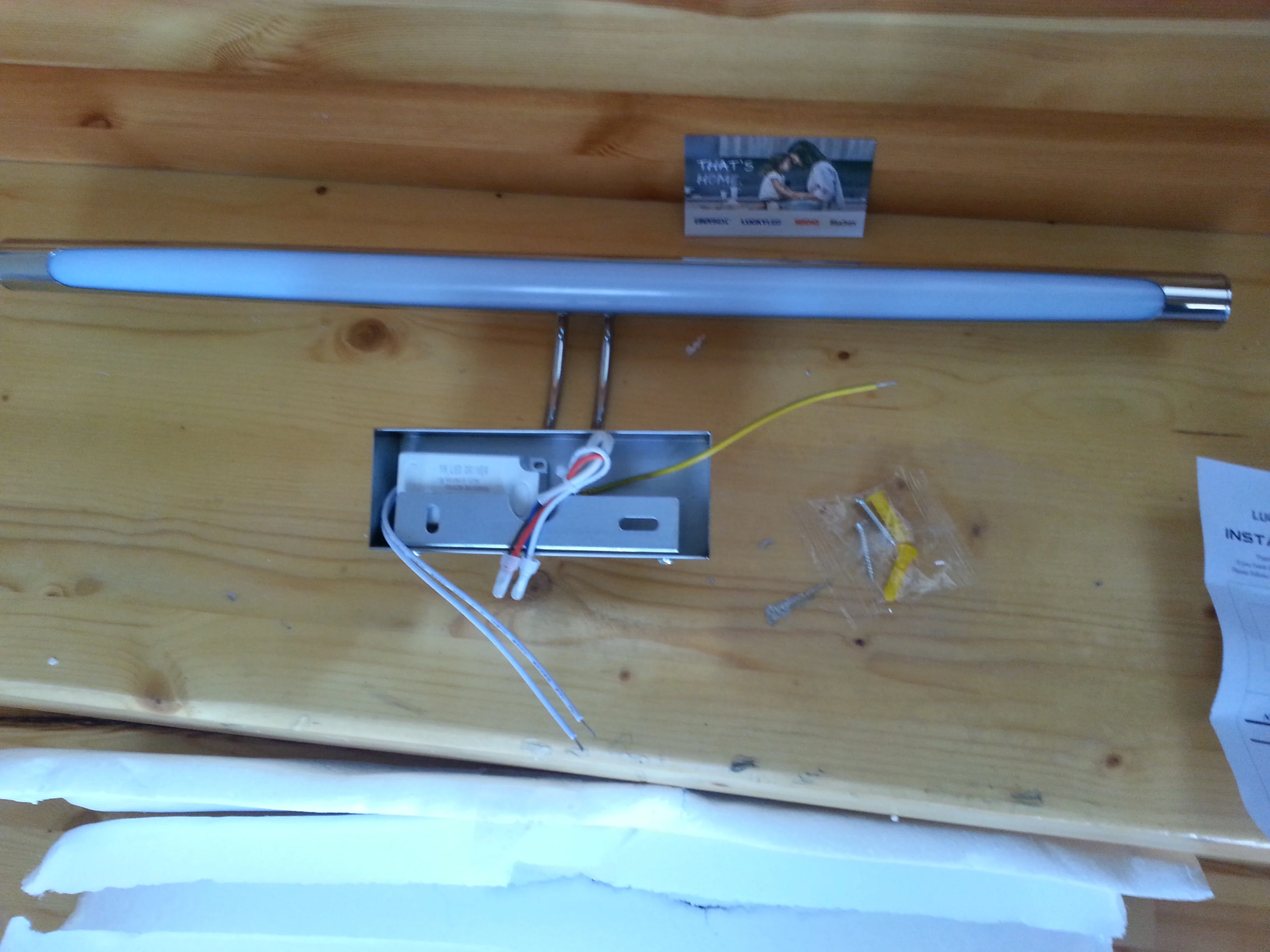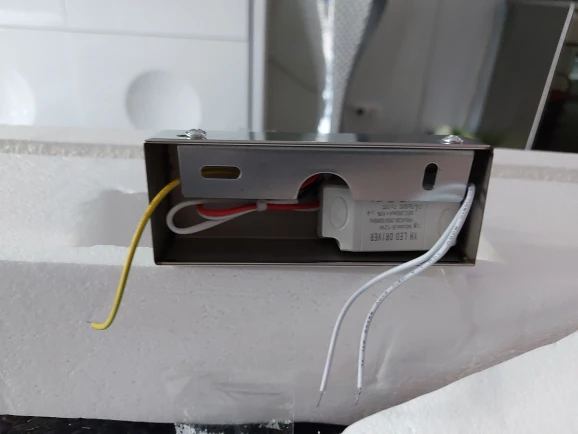 Металлический короб из качественного металла, задолбался сверлить чтобы воткнуть кнопку. В целом пока все работает, если сгорит дополню отзыв. Воткнул модуль ewelink за 300 рублей, питается светильник у меня от основного света, а модуль умеет запоминать последнее состояние.