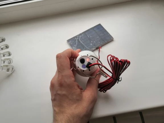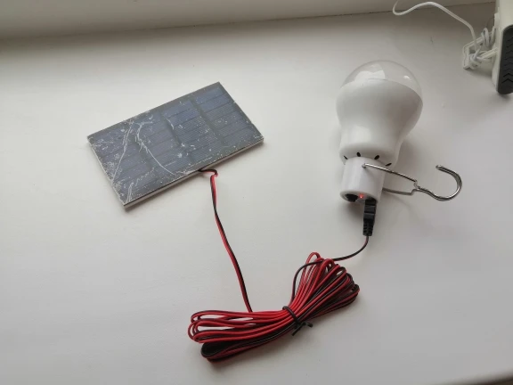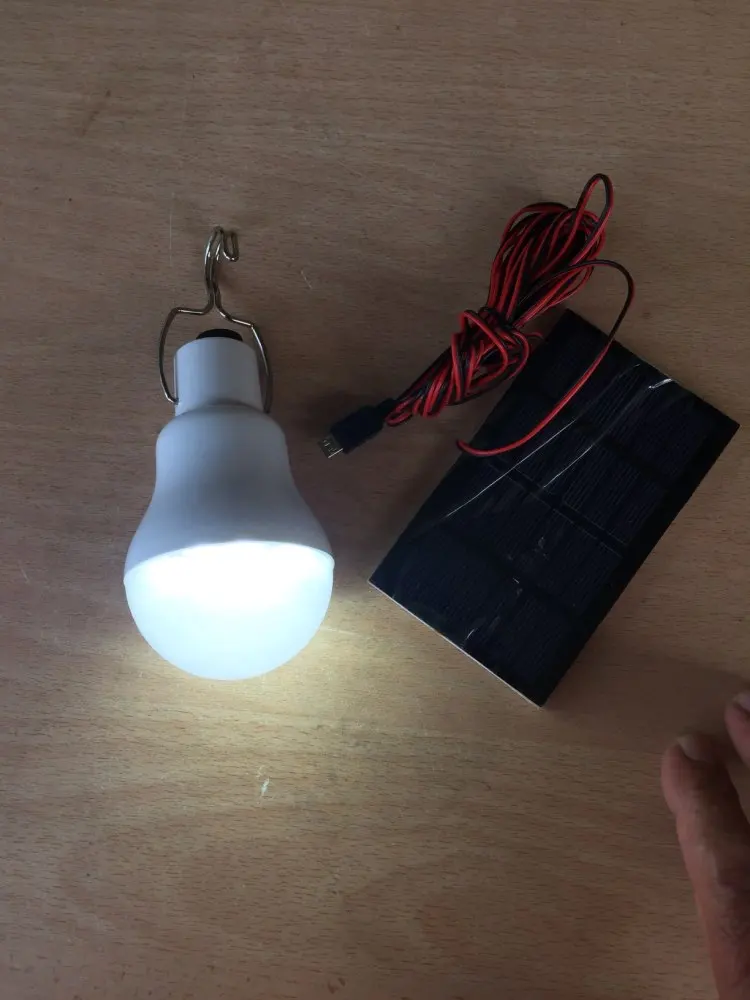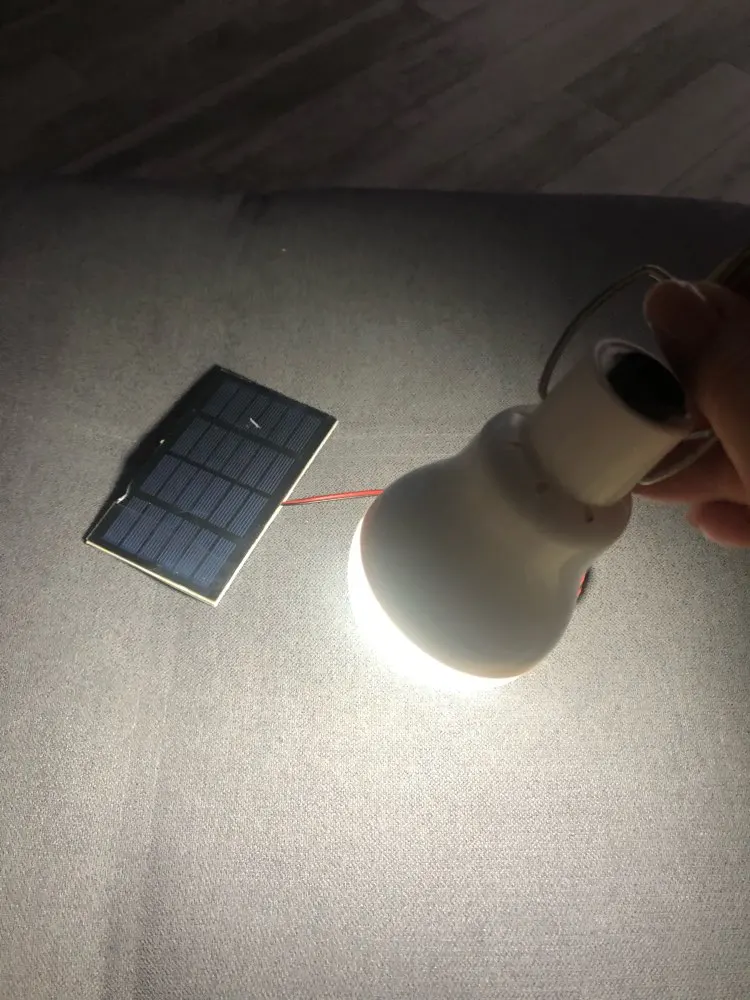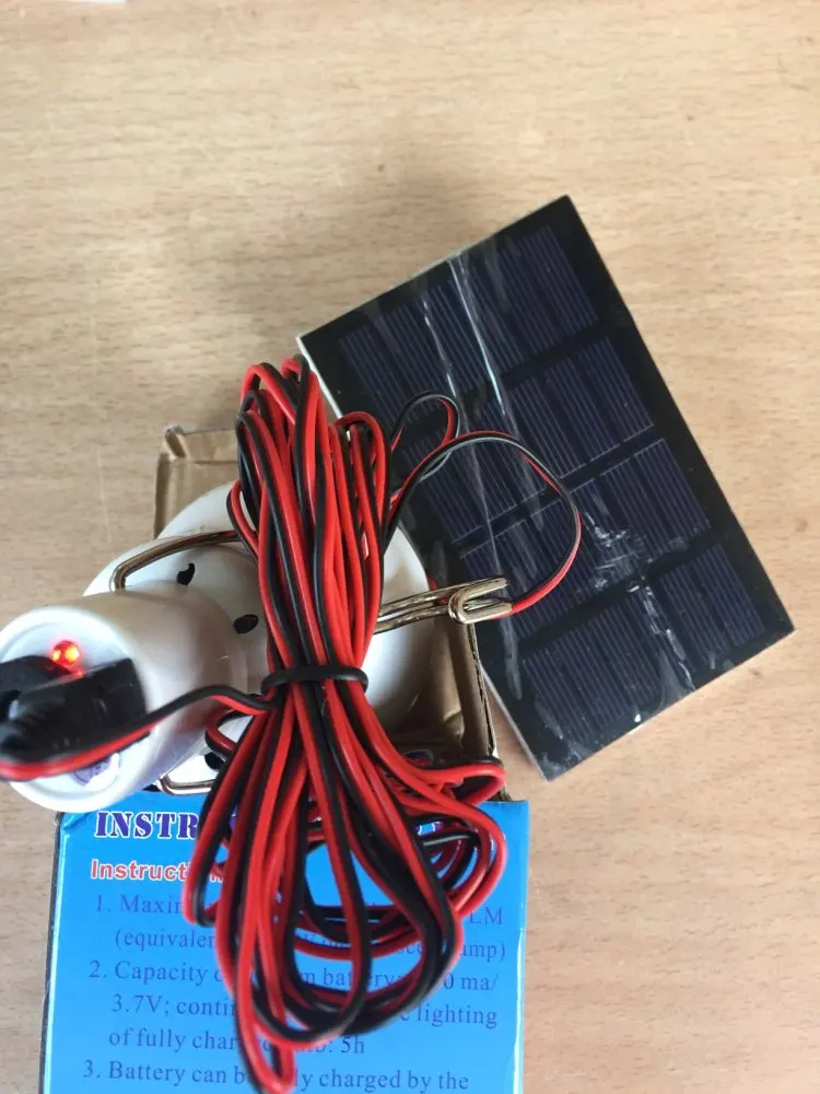 Delivery fast (about 3 weeks). It all came whole. Ordered 2 pieces (it turns out a small discount). The solar panel itself looks хлипенько, namely, the solar plate is glued to a double-sided tape (most likely from the rain all this design will break down), very small, a wire is soldered to it. The lamp looks reliable, detaches from the wire and can be used without a wire. Turns on with a button. It shines quite brightly. Came loaded. The battery is in the lamp. I took one for 514 rubles (with a coupon of AliExpress and a store). In general, in the economy, as an emergency option is useful.