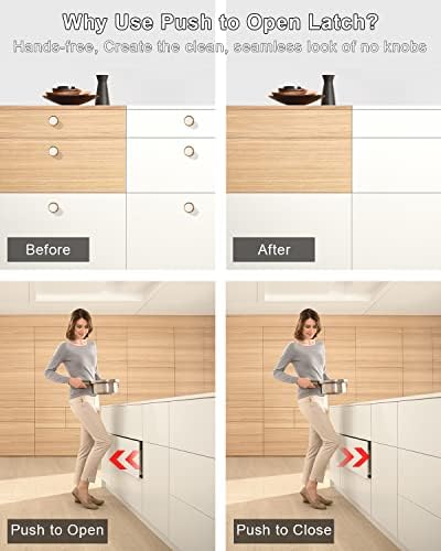 Push to Open: Constructed-in spring-loaded plunger, you may simply merely press the door to latch or unlatch. Eliminates the necessity for handles or knobs. Create the clear, seamless look of no knobs. Appropriate for utilizing with hinges with out self-closing characteristic.