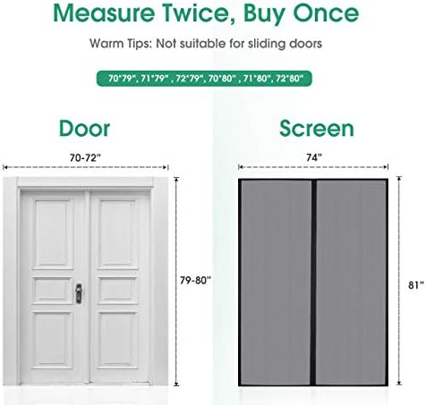 πγRetractable Widthγ: The magnetic display door is 74β³X81β³. Itβs appropriate for door from 70β³ to 72β³ in width, and from 79β³ to 80β³ in peak. Please Examine your door measurement earlier than buy.