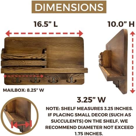 π Bigger Measurement, Extra Shelf and Storage Area: Constructed barely bigger than conventional mail and key holders to supply you extra storage and hanging use. Measurements are 16.5W x 10H x 3.25D. Thick and durable picket backboard.