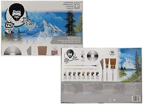MASTER SET: The set contains: 4 oz Liquid White No. 10 Panorama Portray Knife, 1″ Panorama Brush, 2″ Background Brush, 2″ Script Liner Brush Measurement 1, Massive Fan Brush, 37 ml tube of every: Cadmium Yellow, Phthalo Blue, Titanium White, Sap Inexperienced, Van Dyke Brown, Alizarin Crimson, Midnight Black, and Brilliant Pink.