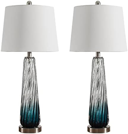 Maxax Desk Lamps Set of two, Blue Glass Bedside Lamps with 3-Method Dimmable, 28.75″ Massive Nightstand Lamp with White Material Shade, for Dwelling Room Bed room