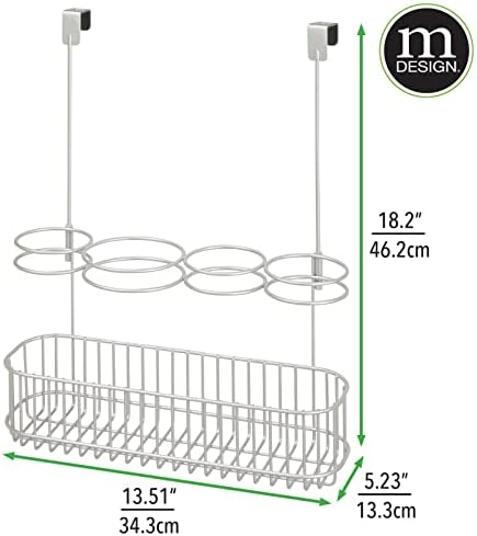mDesign Metallic Lavatory Storage Instrument Organizer Accent Basket Tray – Grasp Over Cupboard Door – Storage for Hair Dryer, Straightener, Curling Iron & Hair Styling Merchandise – Concerto Assortment – Satin