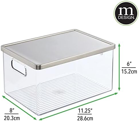 mDesign Plastic Stackable Kitchen Pantry Cupboard, Fridge, Freezer Meals Storage Bin Field w/Handles, Metal Lid – Group for Fruit, Jars, Snacks,11.25″ Lengthy – 2 Pack, Clear/Brushed Nickel