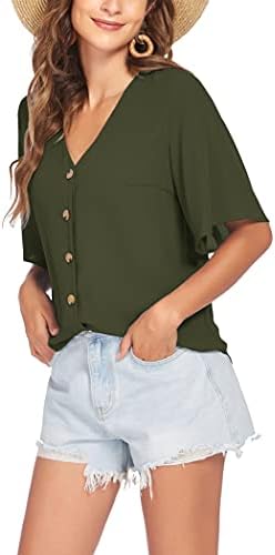 Meaneor Womens Quick Sleeve V Neck Button Down T Shirts Free Chiffon Shirt Informal Tops S-XXL