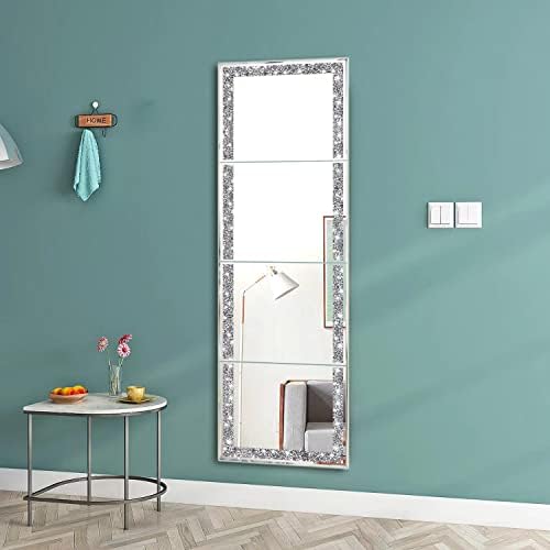 Meetart Full Size Mirror Tiles,Crystal Crush Diamond Full Physique Wall Mirror,14”x11” 4PCS Glass Frameless Make Up Mirror for Residence Decor,Room Decor,Wall Decor.