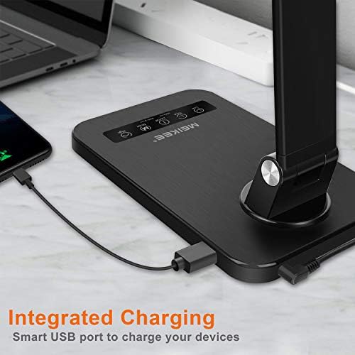 MEIKEE LED Desk Lamp with UL Adapter, 12W Vibrant Dimmable House Workplace Lamp with Contact Management, USB Charging Port, Eye-Caring Desk Lamp, 5 Colour Fashions, 8 Brightness Ranges, Auto Timer Studying Lamp
