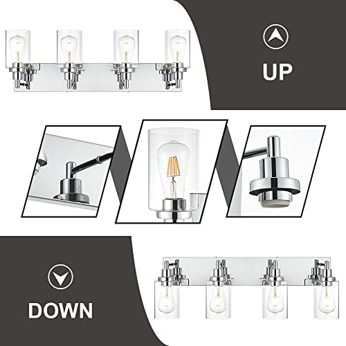 MELUCEE 4-Gentle Toilet Lights Over Mirror Chrome Self-importance Lighting Fixtures with with Clear Glass Lampshade, Fashionable Wall Mount Lamp for Mirror Kitchen Hallway