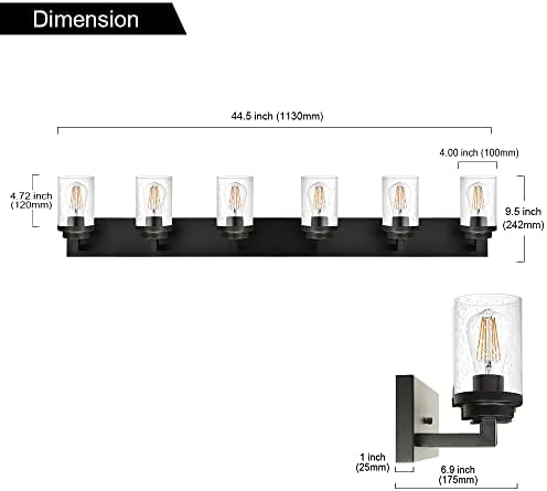 π‘Huge Utility: The black wall lights with seeded glass shade ensures a incredible mild and a preferred search for your lavatory, kitchen, dressing room, vainness desk, powder room, and so on.