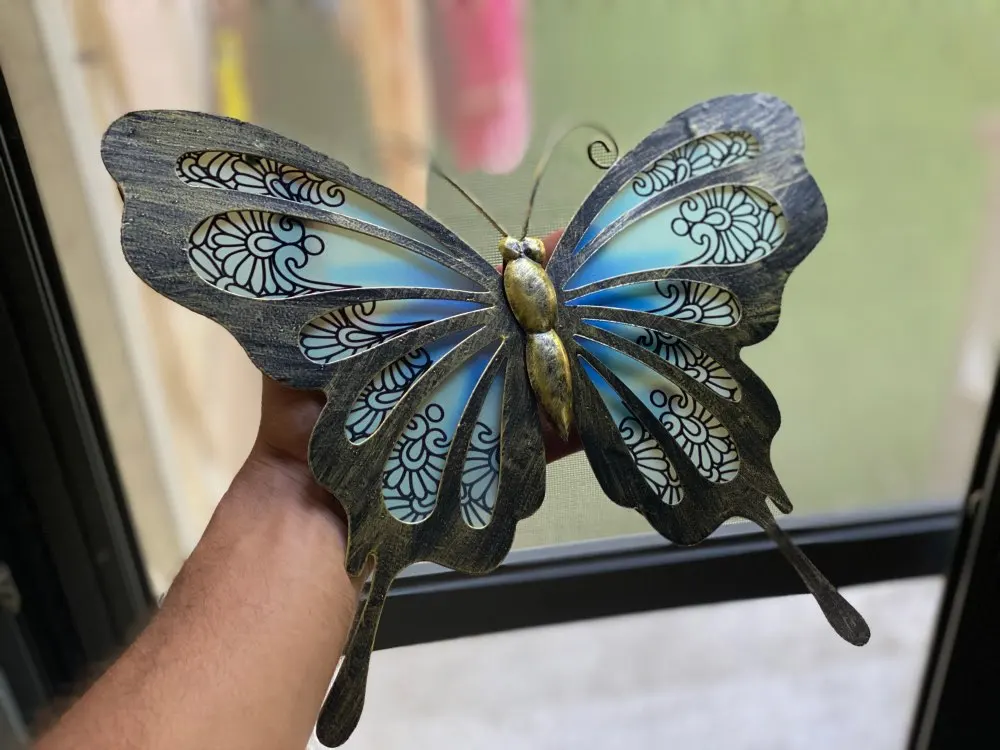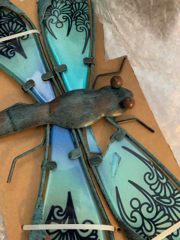 beautiful outdoor wall piece. about 1 sqft in size. the biggest risk is if the seller doesn’t package it well enough to prevent the glass from breaking. I was fortunate with this one and not the butterfly.