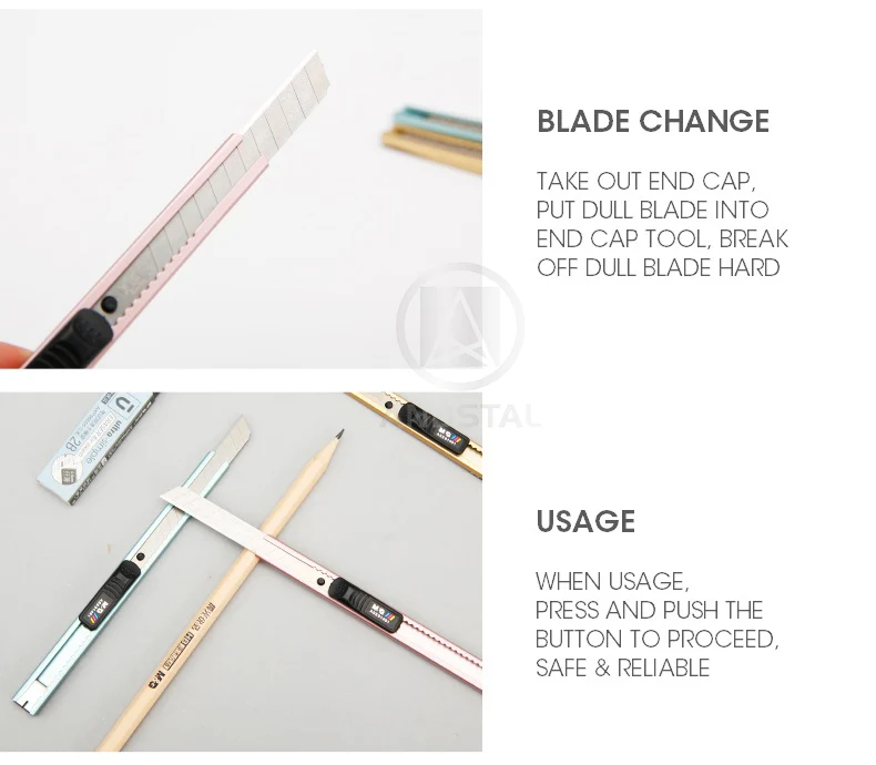 Specification: M&G 3/6/12/24pcs Cool Metallic Shade Mini Utility Knife 9mm Paper Cutter Stationery Knife Stainless Metal Steel Workplace Craft Field