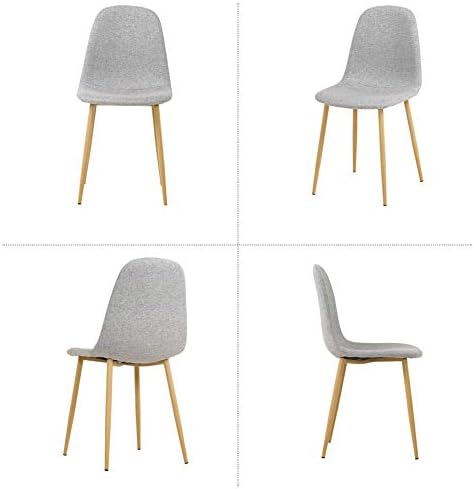 Mid Century Eating Room Chairs Set of 4,Trendy Eating Chairs,Kitchen Chairs with Cloth Cushion Seat Again,Residing Room Chairs with Wooden Printed Switch Steel Legs for Eating Room,Kitchen(4Grey Chairs)