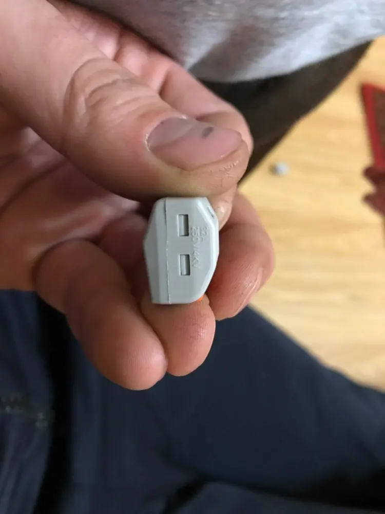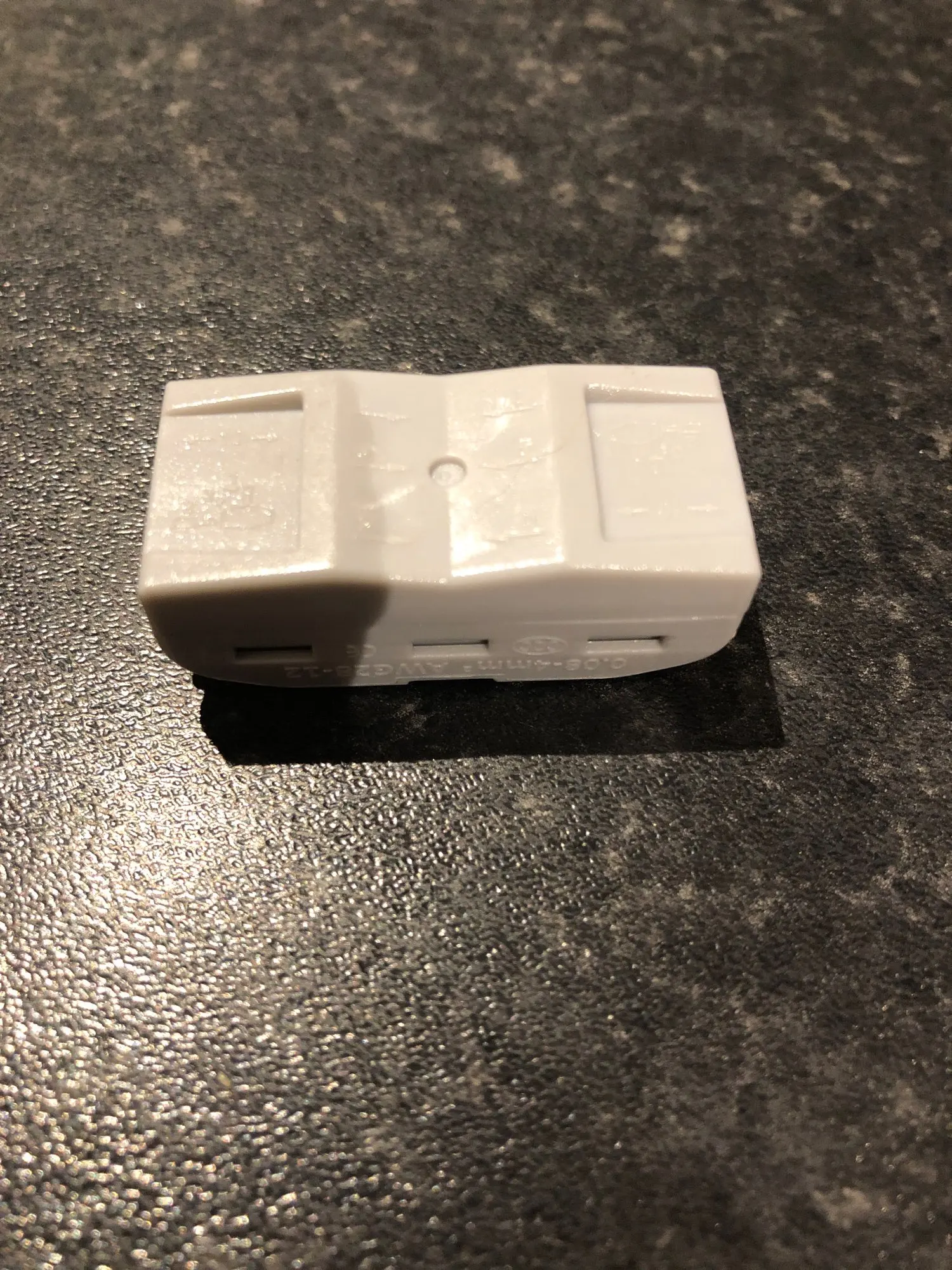 A 3 wire through connector marked L-E-N through. Good quality and firm grip on the wires.
