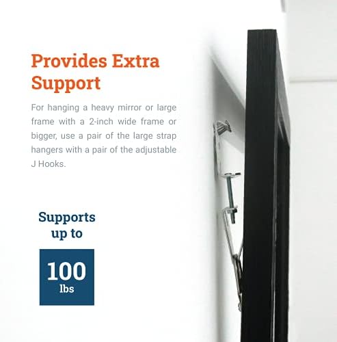 Ideally used to hold medium weight to heavy mirrors on drywall or wooden. Helps as much as 100 kilos utilizing a pair of the massive strap hangers with a pair of the adjustable J Hooks.