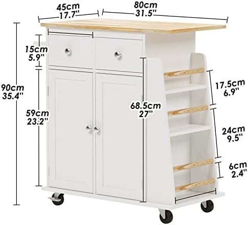 【Multi-Perform】: Measuring in 34.45L x 17.91W x 35.24H inches in measurement, this multifunctional kitchen island cart is works effectively as a house storage cupboard, kitchen eating bar, trolley cart, resort cart, microwave cart,and so forth.
