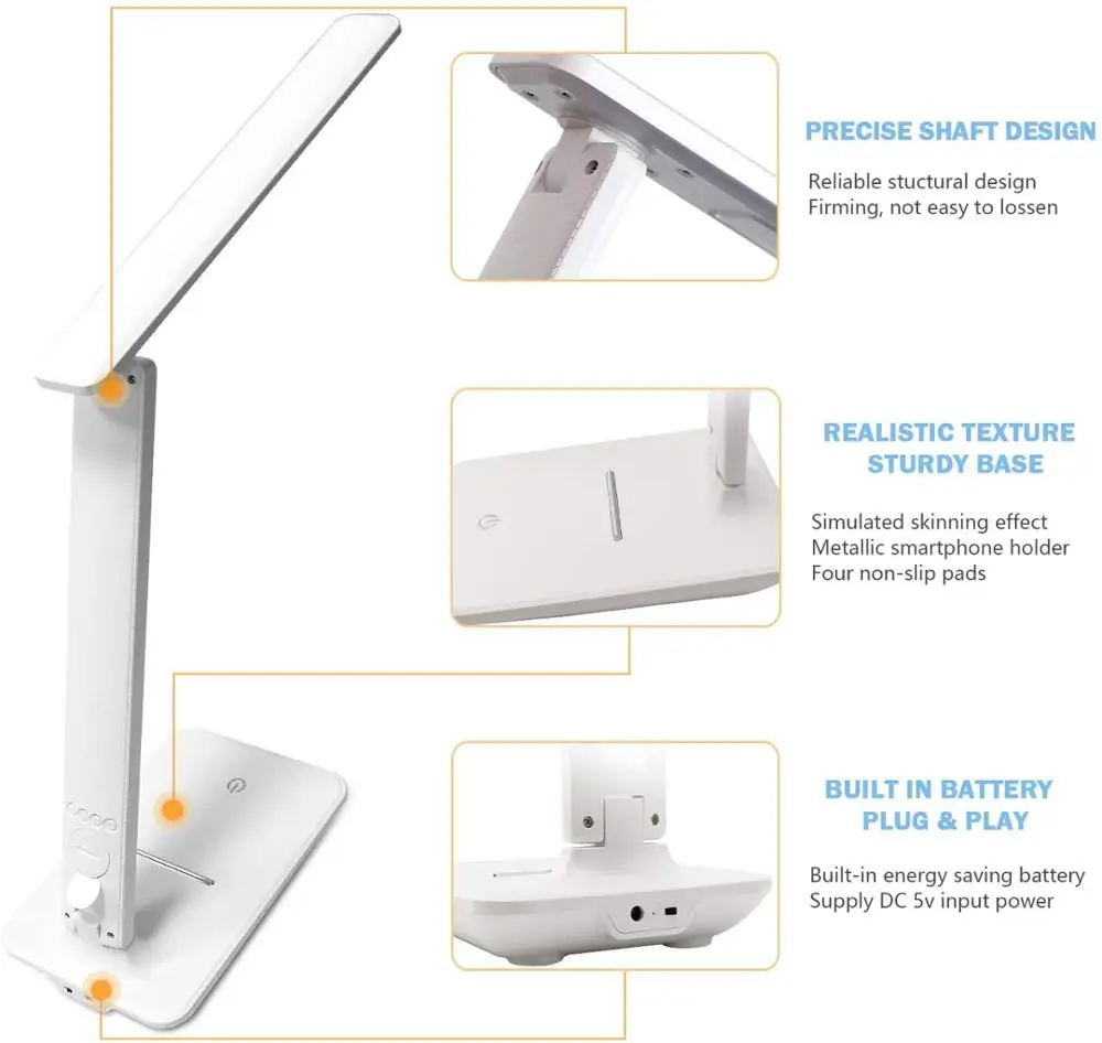 Specification: Fashionable Enterprise Led Workplace Desk Lamp Contact Dimmable Foldable With Calendar Temperature Alarm Clock desk Studying Mild LAOPAO