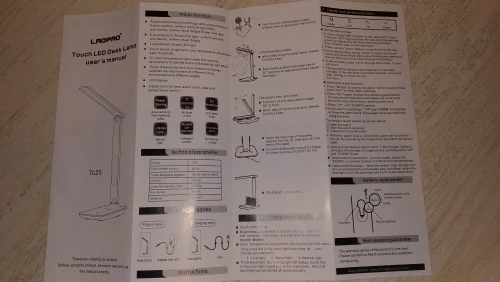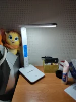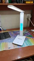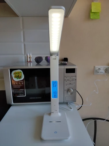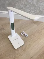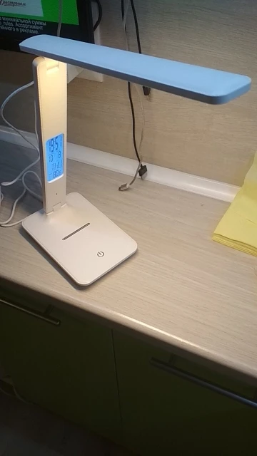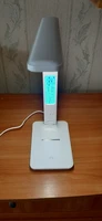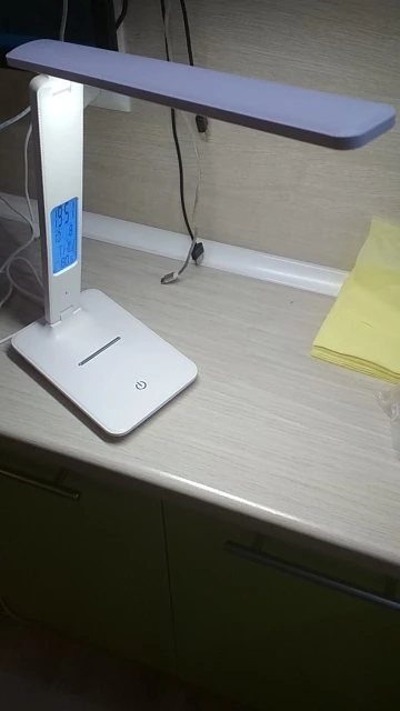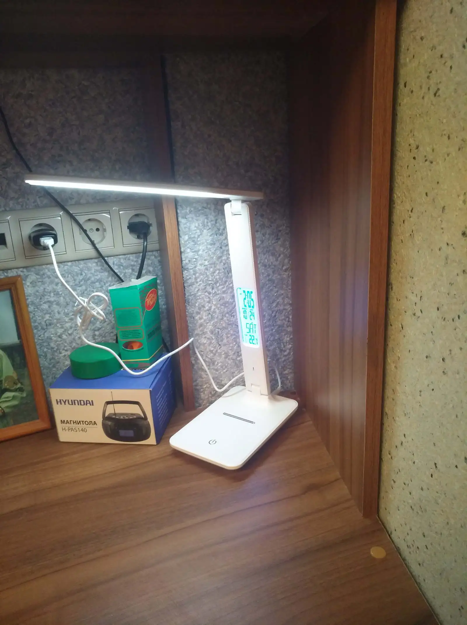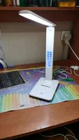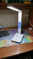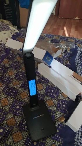 Достойная лампа. Три режима яркости , в каждом ещё три цвета – жёлтый , средний, белый. Оттенки меняются длинным удержанием кнопки. кнопка сенсорная. Сзади механическая кнопка включения аккумулятора. Часы , календарь и температура воздуха. Корпус приятный на ощупь , сделан под кожу из пластика. в сложенном виде очень компактная. со склада из России приехала за 4 дня с момента заказа. Хорошая лампа. Рекомендую!