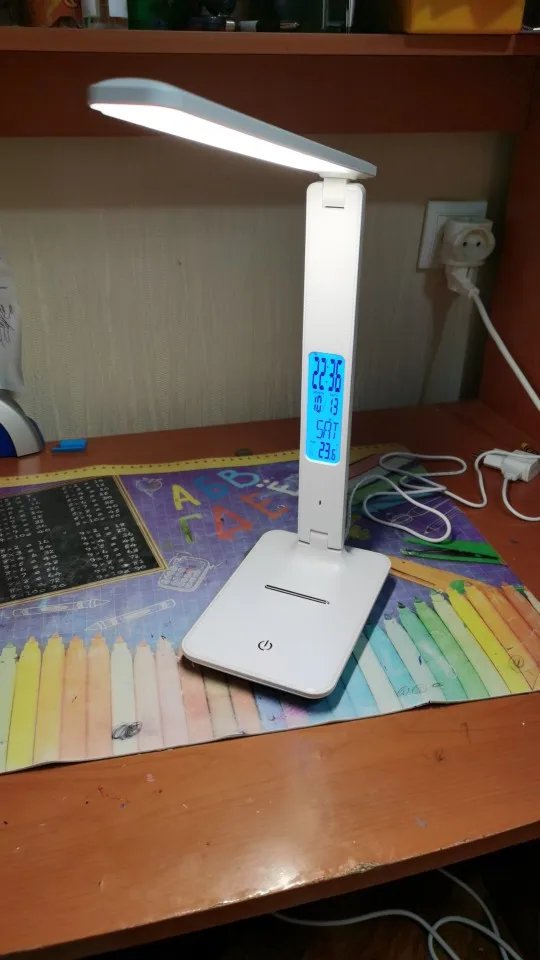 20 reviews for Fashionable Enterprise Led Workplace Desk Lamp Contact Dimmable Foldable With Calendar Temperature Alarm Clock desk Studying Mild LAOPAO