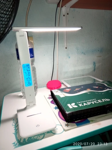 Ordered on July 15. Order in Kurgan courier brought July 27 home. ordered from Russia. The lamp is packed in a box and in Thessaloniki. The clock with the date set up immediately. The lamp has 3 shades. Each shade has 3 brightness. With a long press turns on and off the clock backlight. Brightness does not remember, begins to turn on with small light. But the shade remembers. Works from batteries. That’s a plus. There is about the same lamp, shine equally in brightness. I did not notice the pulsation. I advise the store and the seller. I attach the photo.
