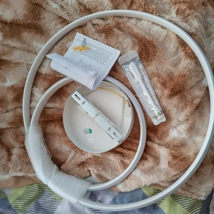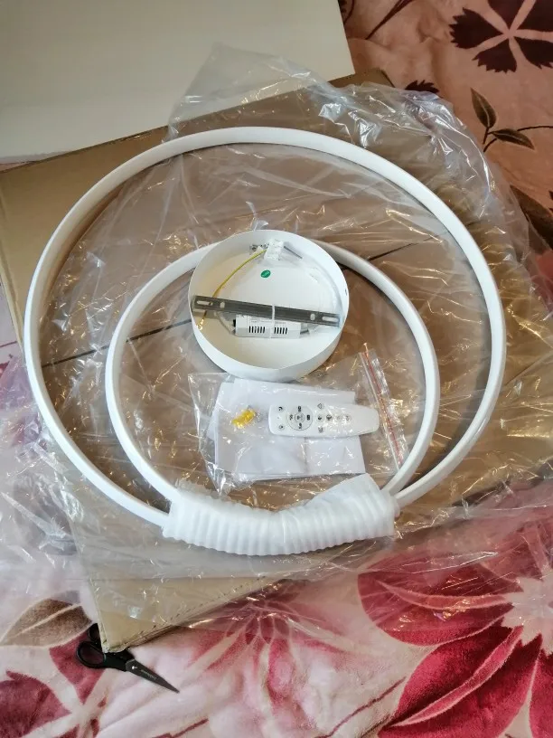 The chandelier is very beautiful and bright. Took to the room 3 m x 2.5 m. She’s more than enough. You can also take a large room on the square. Included is a remote control for lighting. You can adjust the lighting temperature. Also, the temperature is adjusted by a touch switch without a remote control, by simply holding the sensor. It is very convenient. The seller is just doing well!!!!!!!