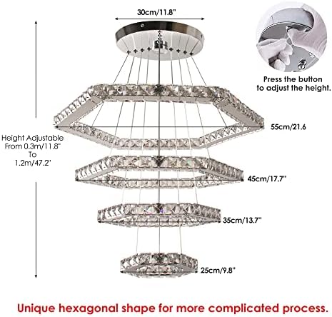 Be the first to review “Fashionable Crystal Chandelier Polygon Dinning Room Chandelier 4 Rings Chandelier Flush Mount Stainless Metal Pendant Lights Fixture for Dinning Room Kitchen(6500K Cool White)” Cancel reply