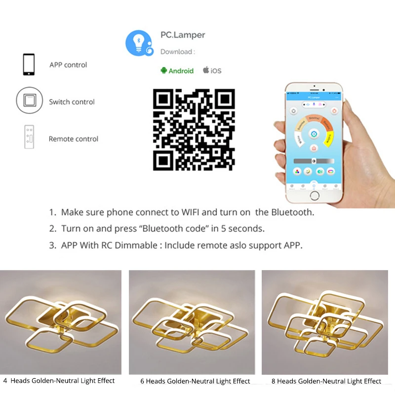 Lampshade Color: 6 heads square Wattage: APP With RC Dimmable Ships From: Russian Federation Number of Lights: White color