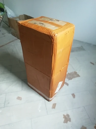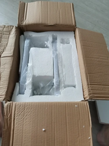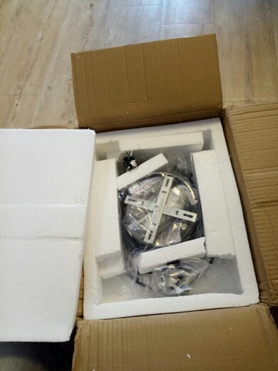 Niestety karton w tragicznym stanie. Dołączony protokół uszkodzenia: “Opakowanie otwarte z dostępem do środka”. Środek, styropian połamany i posypany. Podstawa lampy, róg blachy wygięty i lekko uderzony z odkształceniem struktury. Ogólnie lampa fajnie wygląda i działa dobrze więc sporu nie otwieram. Trzeba jednak uważać przy składaniu aby nie przekręcić gwintu (tulejki z gwintem niepełne), produkt delikatny, cieńkościenny.