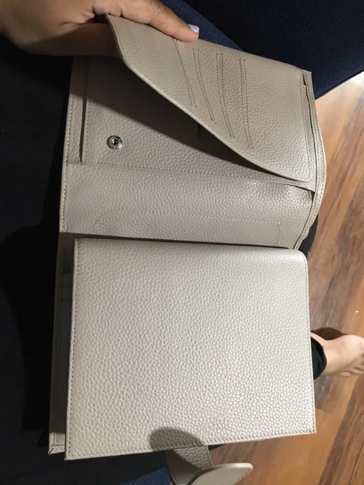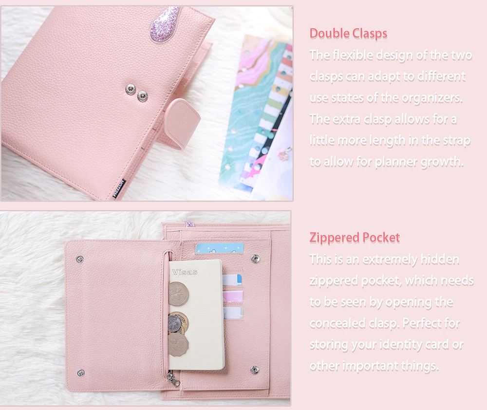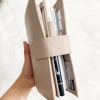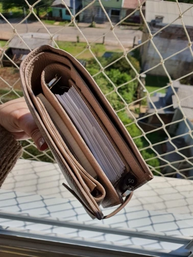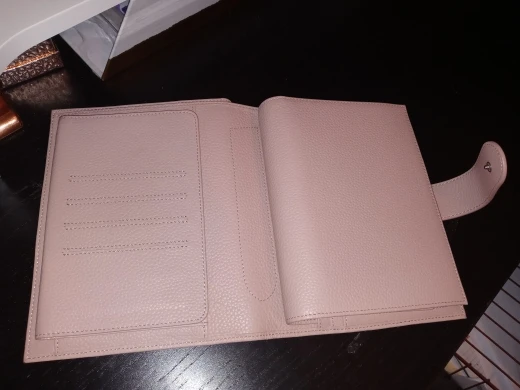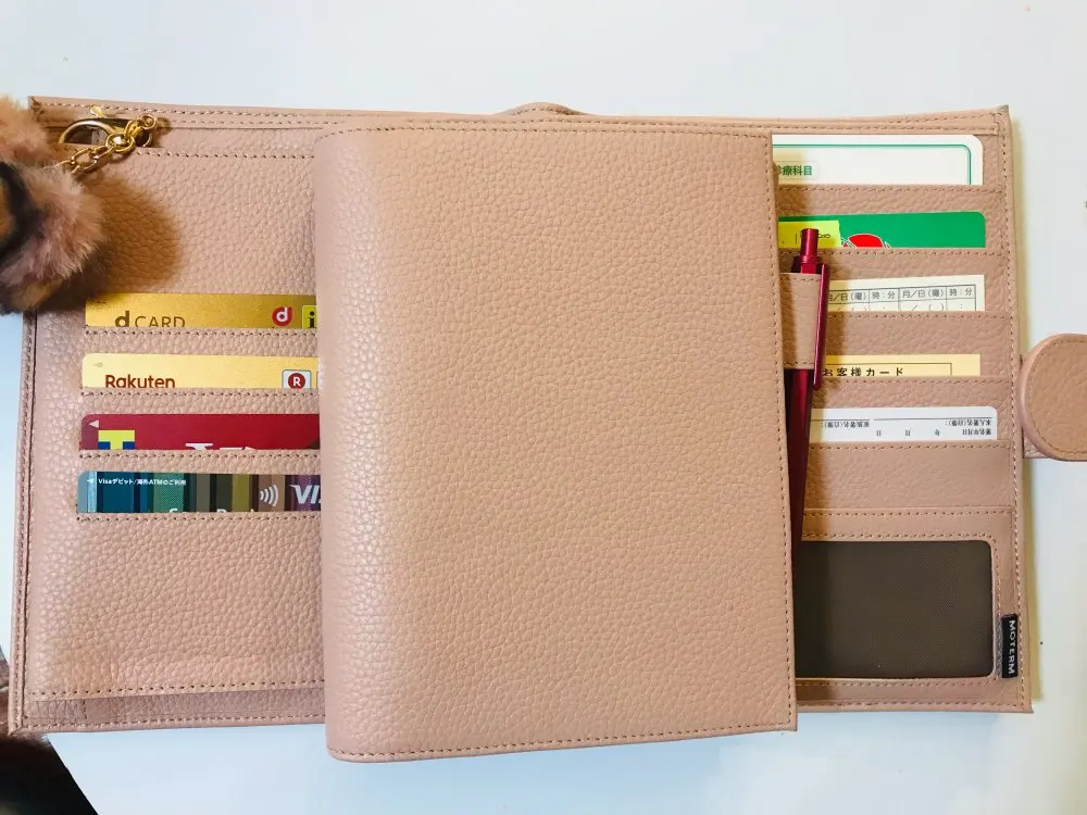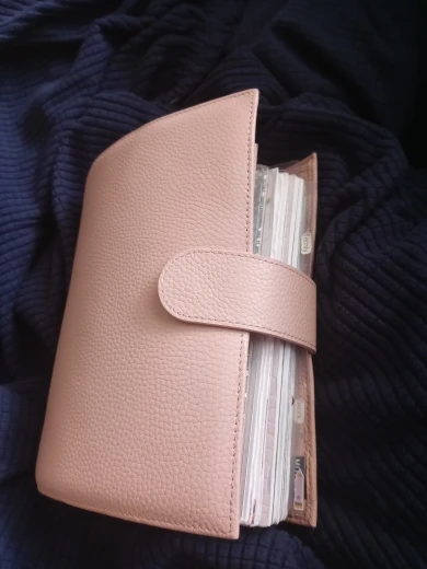It’s a little bigger than I thought, but it’s very convenient. The color of pink is smoky and elegant. I wanted to use this as both money to planner,so I satisfaction. I received at 2 weeks.