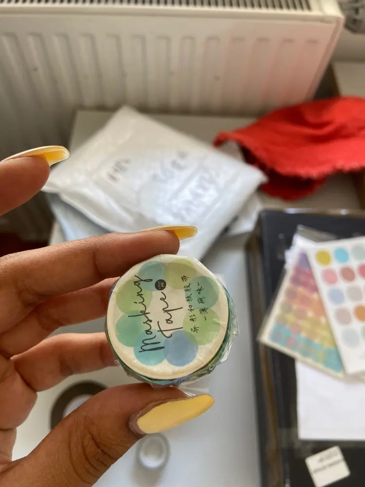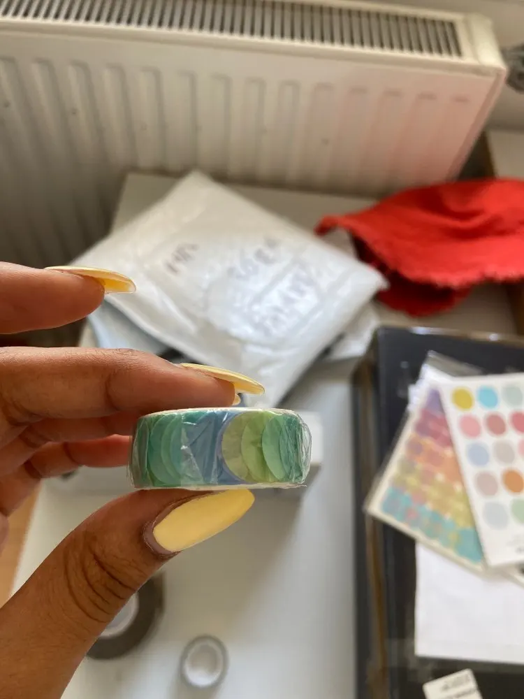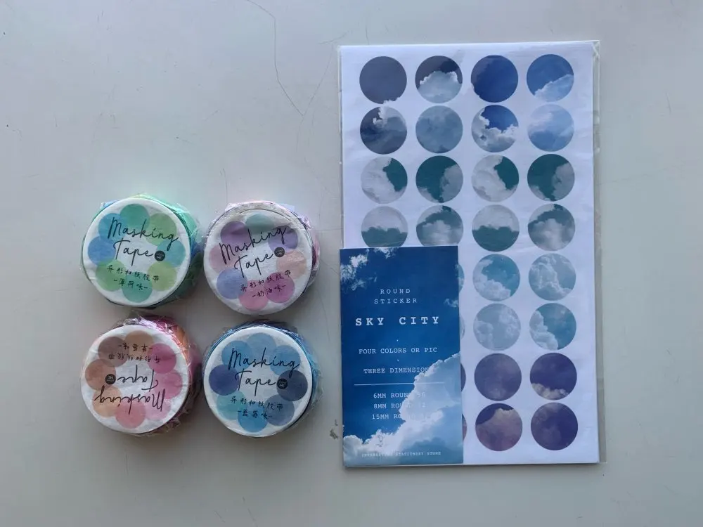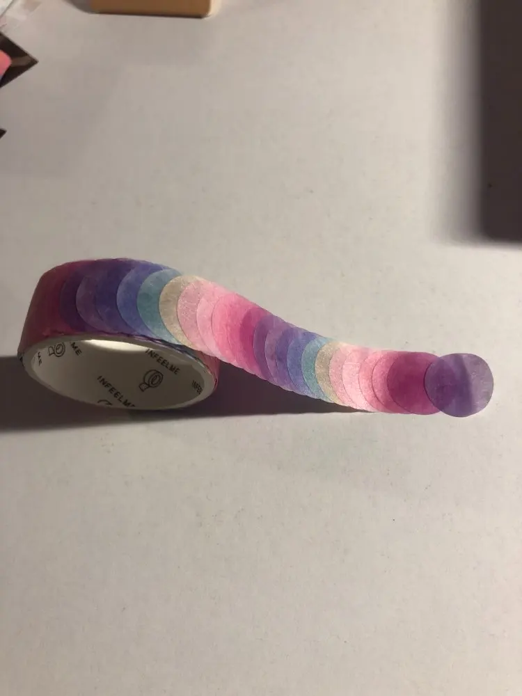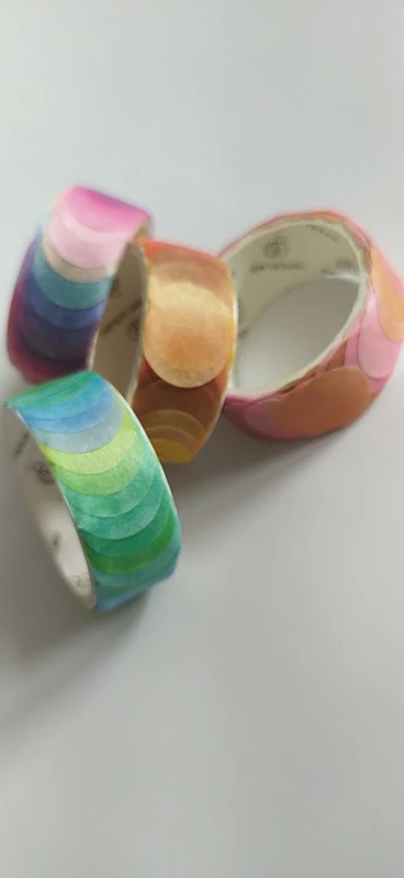 super cute washi tape! there’s no backing behind them unlike other washi tapes from this store, so be aware. also, there’s very little washi tape and the circles are hard to detach individually. individual circles are quite small (i used a dime as reference). i ordered 7/7/2020 and received them 7/31/2020, which imo is super fast considering it was shipping from china to usa!