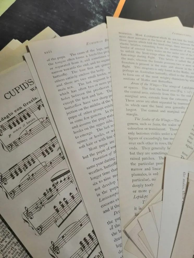 I bought other products from this store and was pleased with the packaging. Nothing was damaged and they all came in great shape! The shipping took 20 days to arrive in Canada, which is super quick! The paper quality is okay, they’re not thick but they’re not thin either. It’s decent. But, I really like how there is so much of it for its price. It’s definitely worth it. Some of the pages look like they came from a dictionary, some are music sheets and some look like they came from a novel.