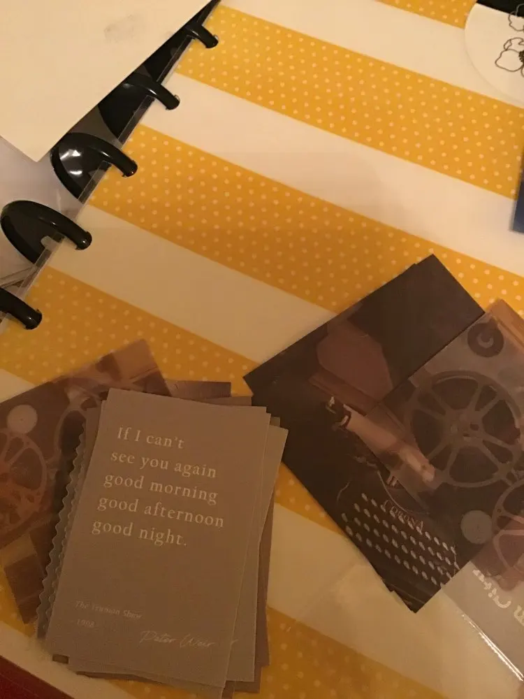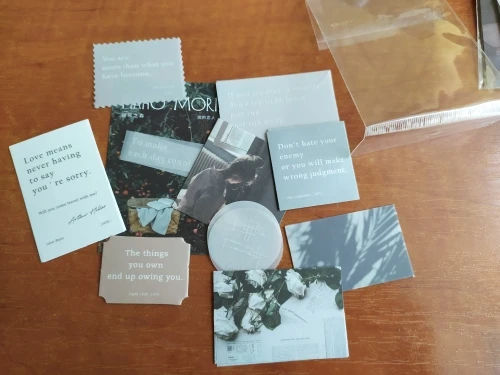 Very nice cards with quotations form movies I liked them the most from 3 types I choose. They came very quickly – I ordered 19 or 20/09 and got 9/10 in well packaged envelope. Some types are made of good quality papier and some are mixed paper with plastic that is transparent a little. There are 3 copies of every