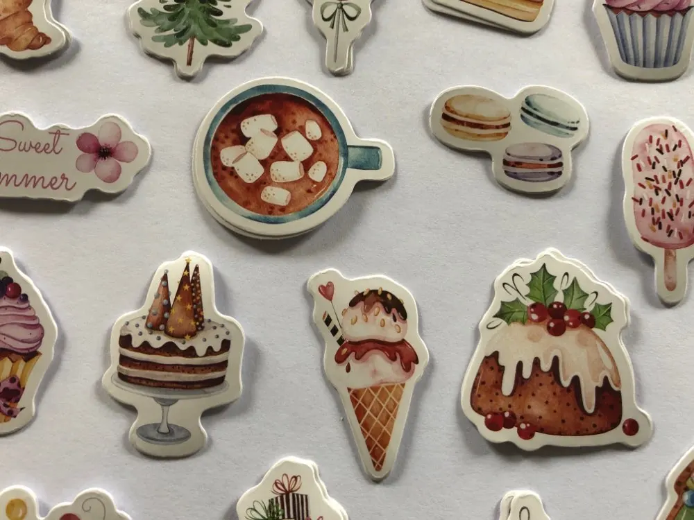 Bright and smooth cut stickers, all 40 pieces. Each kind of stickers of 2 pieces.
