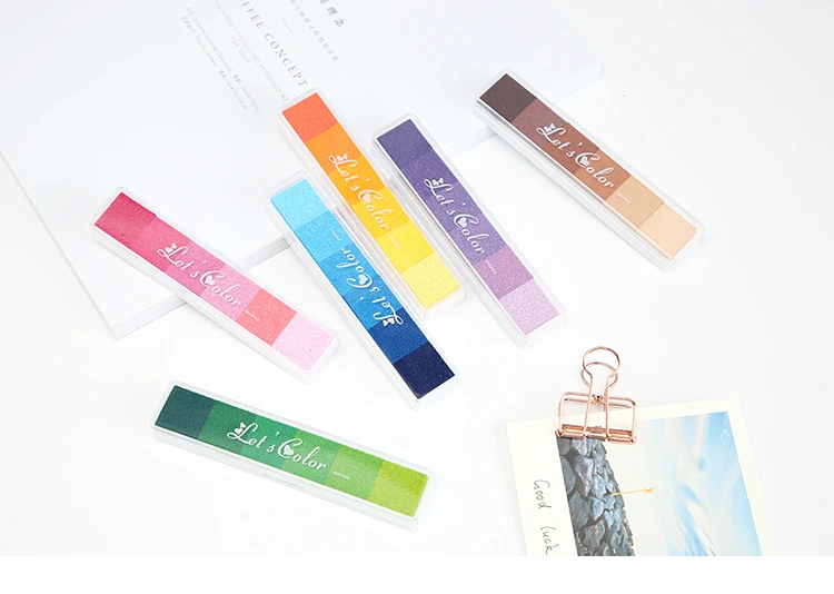 20 reviews for Mr Paper 6 Colors Gradual Change Colorful Long Inkpad Handmade DIY Craft Oil Based Inkpad Rubber Stamp Paper Scrapbooking Inkpad