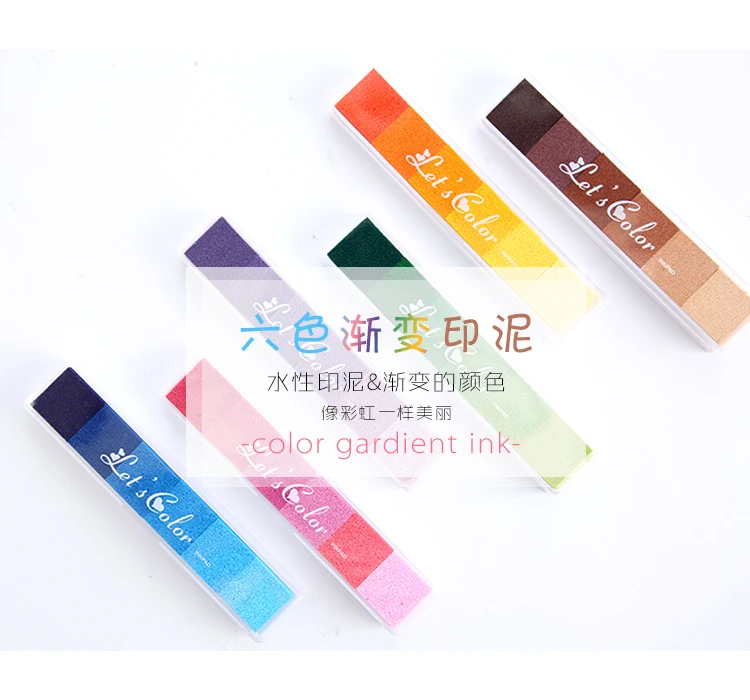 Specification: Mr Paper 6 Colors Gradual Change Colorful Long Inkpad Handmade DIY Craft Oil Based Inkpad Rubber Stamp Paper Scrapbooking Inkpad
