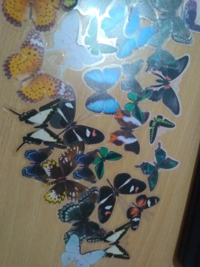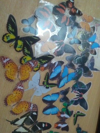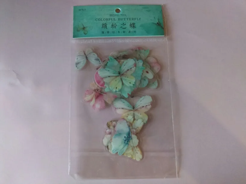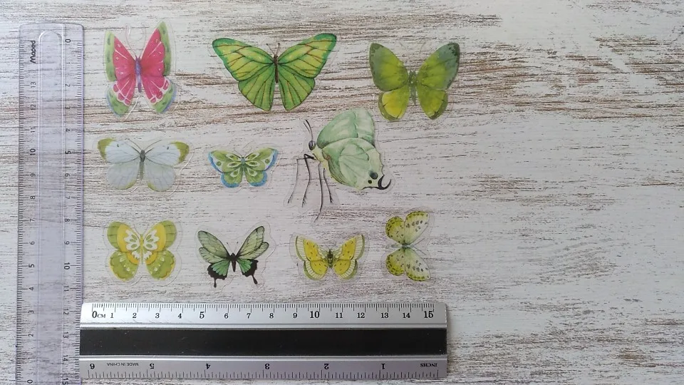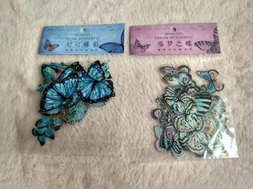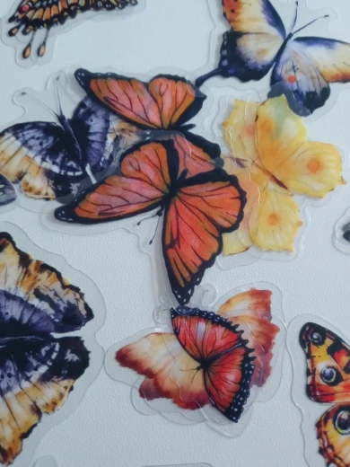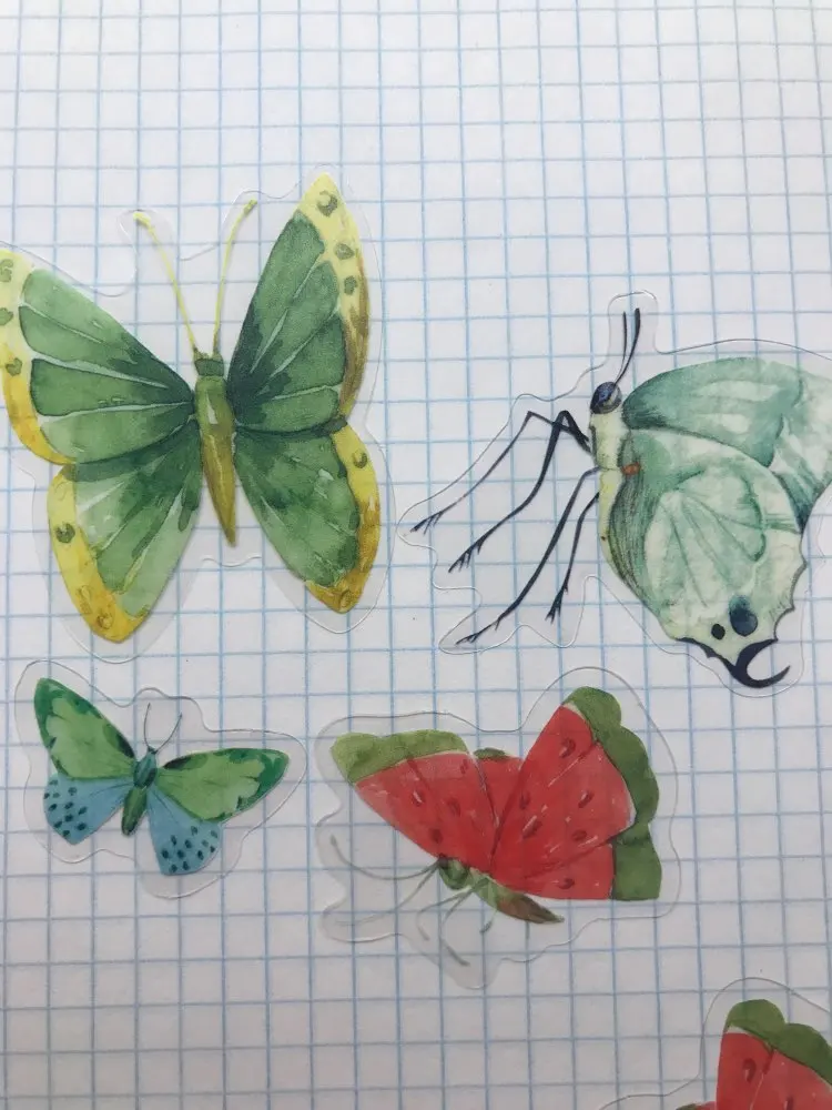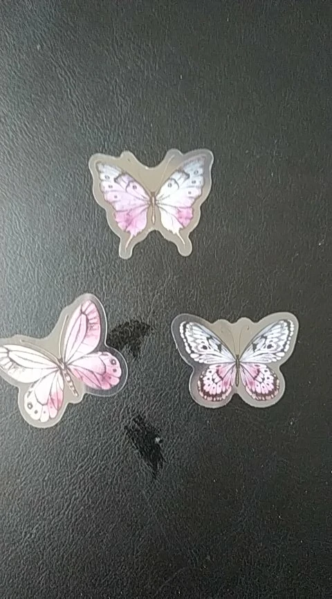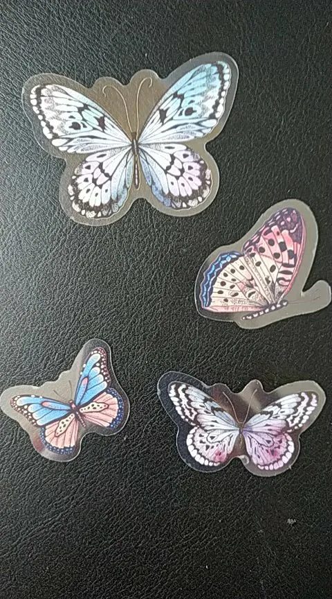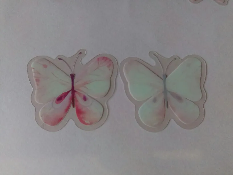 Very cute stickers. Printing clear, in a set of two pieces of each kind, on the reverse side they are pale, matt-transparent. Butterflies are very beautiful 🙂