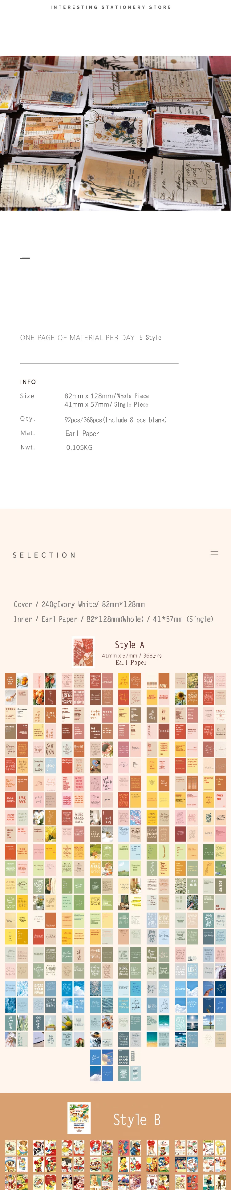 Specification: Mr.paper 8style 92pcs/368pcs Medieval Material Paper Retro Journaling Bullet Junk Scrapbooking Label Fresh Words LOMO Cards