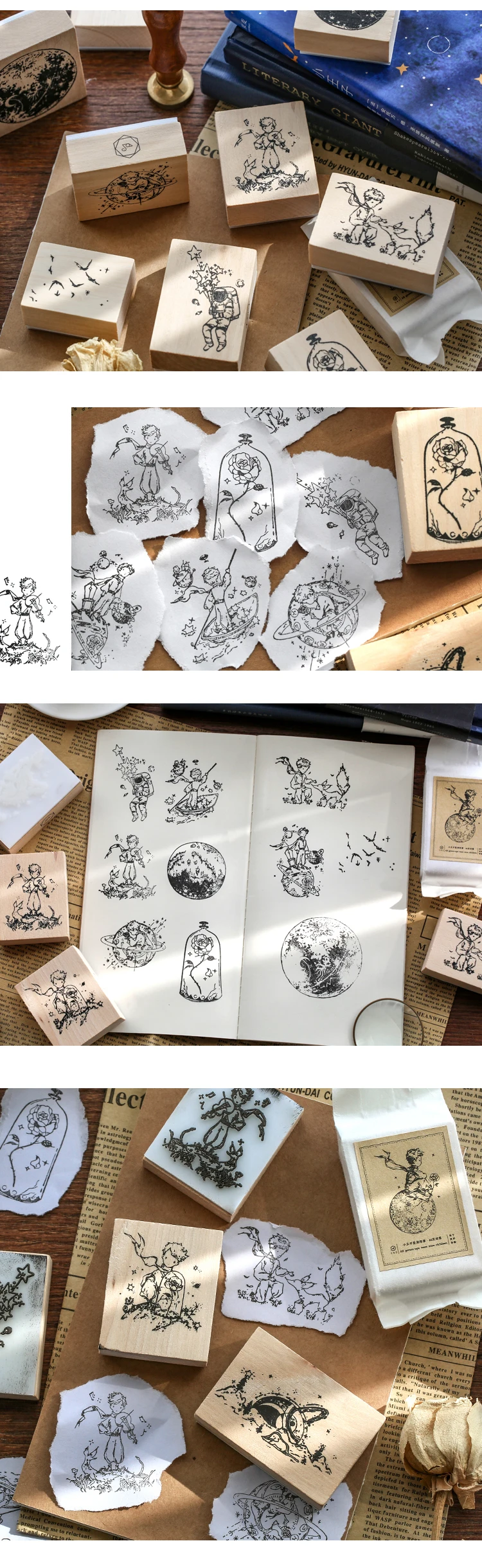 20 reviews for Mr.paper Vintage Little Prince Moon Decoration Stamp Wooden Rubber Stamps for Scrapbooking Stationery DIY Craft Standard Stamp