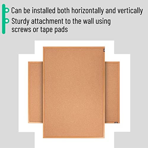 Mr. Pen cork board measures 24″ x 36″. You’ll be able to set up it vertically or horizontally as you want.