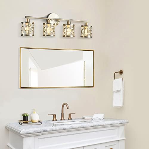 Self-importance Mild Fixtures, 4-Mild Rest room Mild Fixtures, Fashionable Wall Mild with Crystal Shade, Brushed Nickel End Wall Sconce Lighting for Rest room
