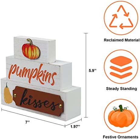 🍁【Eye-catching Fall Decor】 – NEEDOMO picket tabletop decor consists of removable three layers of picket blocks stacked along with the letter “pumpkins kisses”. The pumpkin decor block is printed with an orange-yellow gradient pumpkin and hooked up the leather-based to show 3D visible results, which might make your house hotter and add extra autumn ambiance to your house. This fall dwelling decor caters to fall festive theme and will positively boost your house!