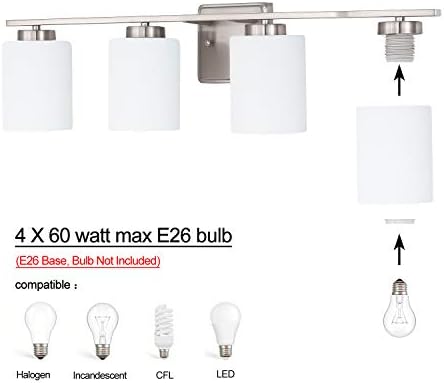 TYPE OF BULBS – 4 gentle rest room vainness gentle from NEOUS makes use of 4 gentle bulbs of as much as 60 watts each – Not Included. Medium (E26) bulb base makes use of primarily a Halogen bulb and can be obtainable as LED, CFL, and Incandescent