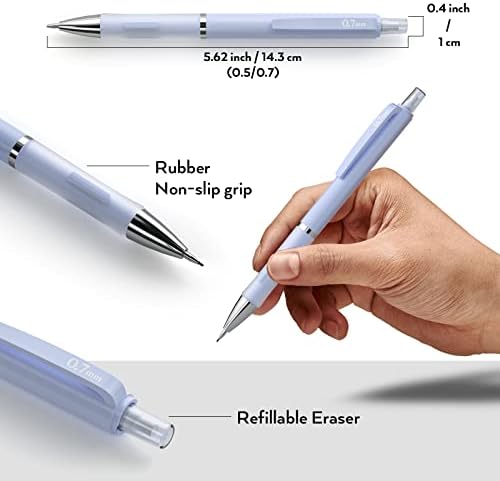 Nicpro 6 PCS Pastel Mechanical Pencil 0.5 & 0.7 mm for College, with 12 tubes HB Lead Refills, 3 Erasers, 9 Eraser Refills For Scholar Writing Drawing, Sketching, Blue & Pink & violet Colours- with Case