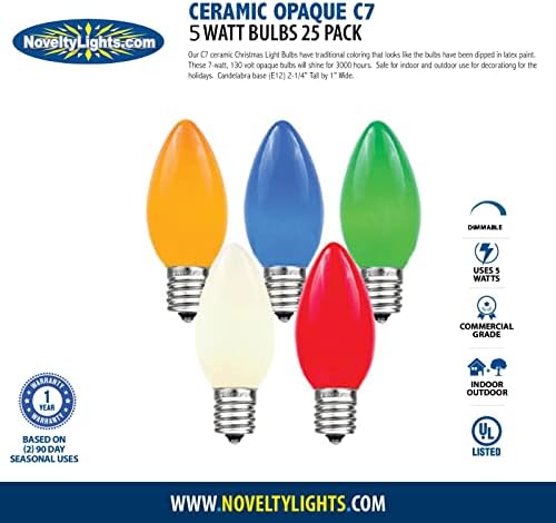 Novelty Lights 25 Pack C7 Out of doors String Gentle Ceramic Christmas Substitute Bulbs, Blue, C7/E12 Candelabra Base, 5 Watt