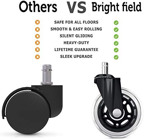 ✅ USER FRIENDLY – Very Simple to Set up; No instruments required; Pull out your previous workplace chair casters and push in your new wheels till stem is firmly seated and safe. – 1-year Guarantee – Cash Again Assure.(It’s not suitable with I-Ok-E-A chairs, OUR STEM SIZE – 7/16″ (11mm) x 7/8″ (22mm))